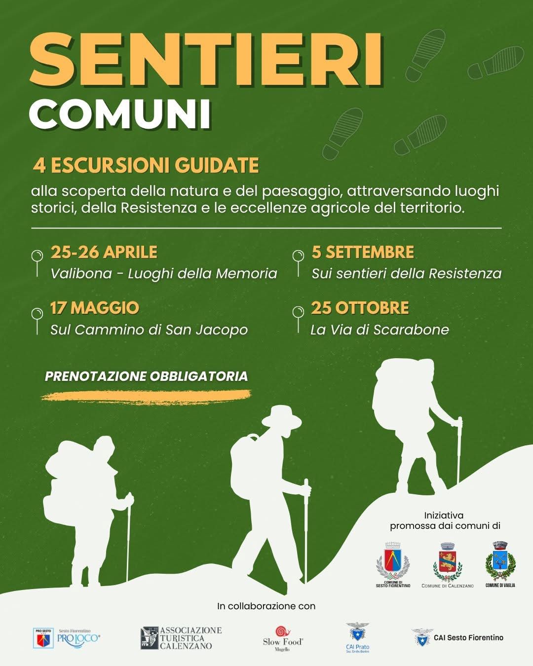 Quattro escursioni guidate alla scoperta dei paesaggi, dei boschi, del patrimonio storico e dei luoghi della Resistenza: i Comuni di Calenzano, Sesto Fiorentino e Vaglia promuovono la rassegna “Sentieri Comuni”, in collaborazione con Pro loco Sesto Fiorentino, Associazione turistica Calenzano, Slow Food Mugello, CAI Prato e CAI Sesto Fiorentino.